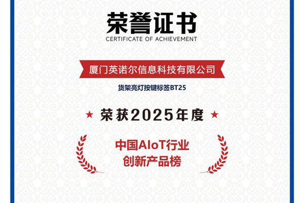 近日,2025“物联之星”中国AIoT行业年度榜单评选结果正式揭晓,英诺尔凭借硬核技术创新与产品落地实力,旗下“货架亮灯按键标签BT25”荣登“2025年度中国AIoT行业创新产品榜”!