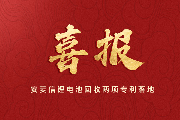 恭喜安麦信锂电池回收两项专利落地 为企业再添硬核支撑 2026-03-31