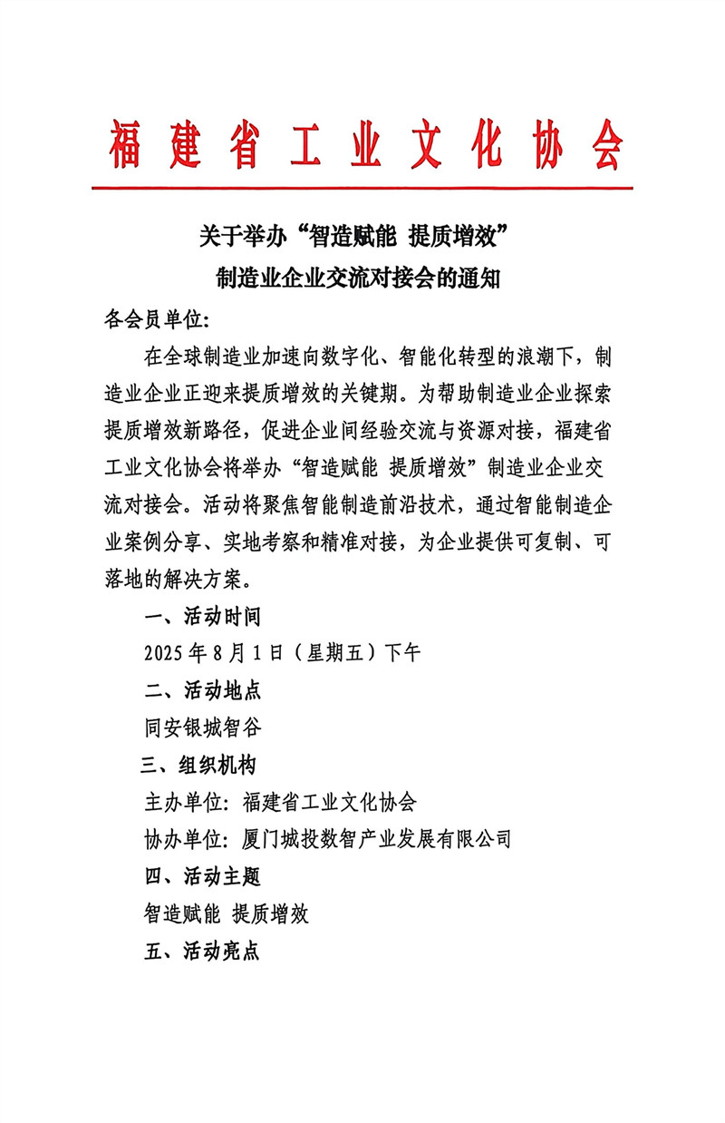 关于举办“智造赋能 提质增效”制造业企业交流对接会的通知