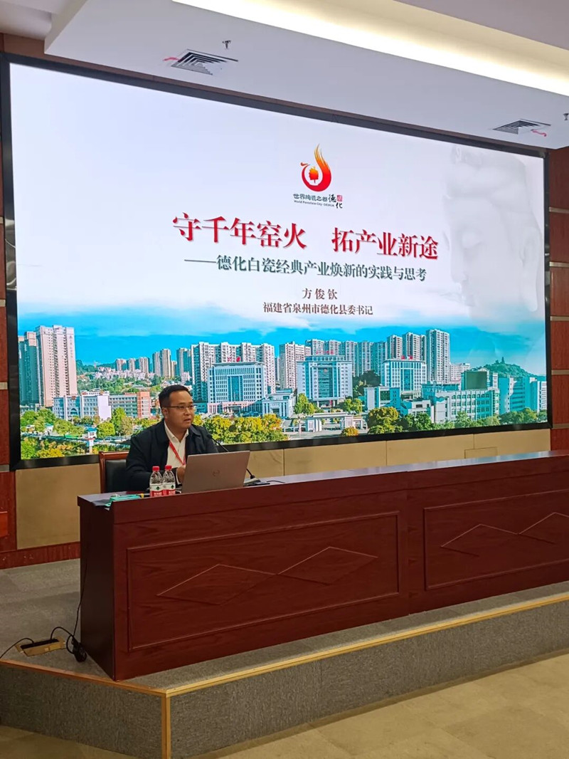 福建省泉州市德化县委书记方俊钦介绍了《德化白瓷经典焕新之路》。德化白瓷以“五个坚持”为抓手加速白瓷产业焕新。坚持技艺传承,深挖千年文脉,活化陶瓷文化,守护非遗技艺,筑牢产业焕新之基。坚持创意创新,通过设计、科技、品牌建设等,提升产业价值,激活产业焕新之能。坚持国际视野,通过国际巡展、展会赛事、陶瓷优品拓市场等,拓展产业焕新之途。坚持做优生态,集群化发展构建产业梯队,要素化集聚降低发展成本,平台化支撑提升产业质效。坚持有为施策,通过政策精准赋能,优化营商环境,提升服务效能,凝聚发展合力,护航产业焕新之路。下一步,德化将锚定“陶瓷千亿产业集群”目标,持续推动陶瓷产业发展,让“中国白·德化瓷”成为走向世界的亮丽名片。