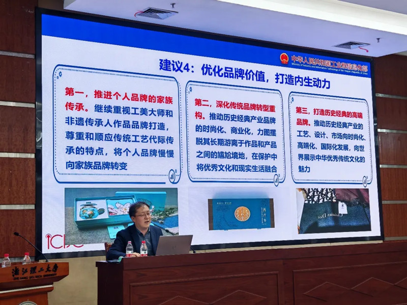 工信部工业文化专家委员会委员、中国国创会副会长单威以《传统文化与历史经典产业》为题进行了授课。他表示,历史经典产业及其产品在世界历史、人类历史上占有重要地位,是我国重要产业和国际贸优势资源。其首创性保证了技术的相对先进性,工巧传统保证了高级精神生活方式,循环经济保证了低消耗、低成本和可持续发展。要坚定文化自信、产业自信及产品自信,以历史主动精神引领产业发展。单威指出,要厘清行业性质、功能、地位,找准在大国崛起中的定位。锚定高质量发展,遵循现代企业、现代制造业规律壮大自身。同时开拓题材,深挖价值,打造高附加值产品。要优化国际文化交流产品,提升对不同文化背景群体的影响效率。